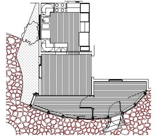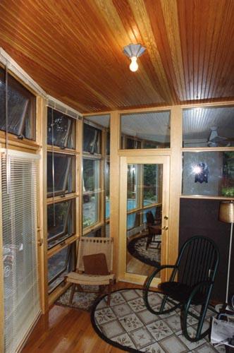 Phase one of this project was a small addition, totaling about 180 square feet, that radically transforms the interior of the house and its relationship to the exterior, and in particular, a beautifully landscaped terrace and pool. The curved shape is employed to create the greatest amount of useable space on the interior with the minimum amount of encroachment onto the terrace; its form is meant to reflect the color, geometry and character of the pool and the surrounding landscape treatment. A formerly dark and diminutive dining room has been greatly enlarged and brightened by the addition, and a small sun porch to the southwest is incorporated into the sweep of glass as well.