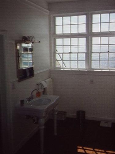 Two spaces run from the entry side to the waterside of the house, giving the house a more informal quality and maximizing the amount of interior space with views of the water. The first of these “spaces” is the grouped kitchen and screened porch and is located centrally in the more active wing of the house, acknowledging that this will indeed be the center of activity. The second “through” space is the one-and-a-half height living room. This space is setback 3 feet on each side, creating an area for a skylight to the shop (to the east) and exercise room (to the west) in the basement below.